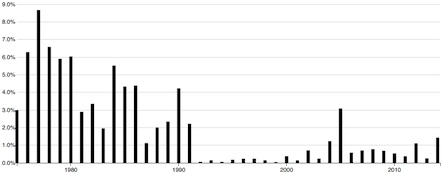 The twenty-first century has not been kind to mothers, mother-daughter relations, families, or even fatherhood. The topic labeled Motherhood had been losing ground throughout the nineties but entered a period of severe draught in the first fifteen years of the new millennium. Love and romance never reached 2 percent of the content in early decades of the journal but has been seriously on the wane since 2001. What sense can be made of the gradual disappearance of women, mothers, families, and romance from the pages of Signs? Multiple hypotheses suggest themselves: families are out of fashion in this postfeminist age; or the new responsibilization of neoliberal governmentality has succeeded in its project of individuation, with dire consequences for women and families; or, feminist scholars have become as antifamily as the new Right has always alleged.